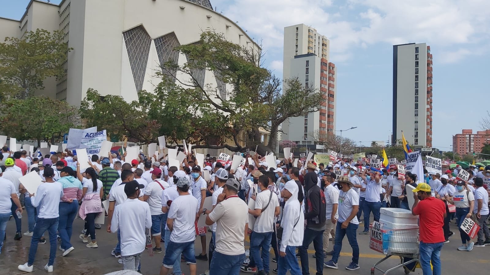 Los sonidos de bubucelas reinaron durante toda la manifestación pacífica de los comerciantes de Barranquilla y área metropolitana, quienes exigieron garantías de seguridad frente al tema de extorsión.
