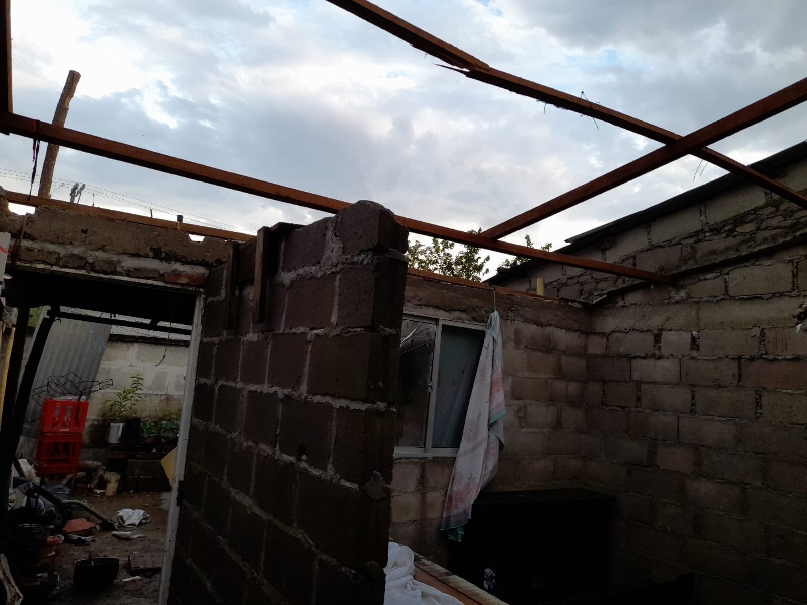 Según la Subsecretaría de Atención y Prevención de Desastres del departamento, las viviendas destechadas se encuentran en el barrio Abraham Juan y también el techo de un escenario deportivo se vio afectado.