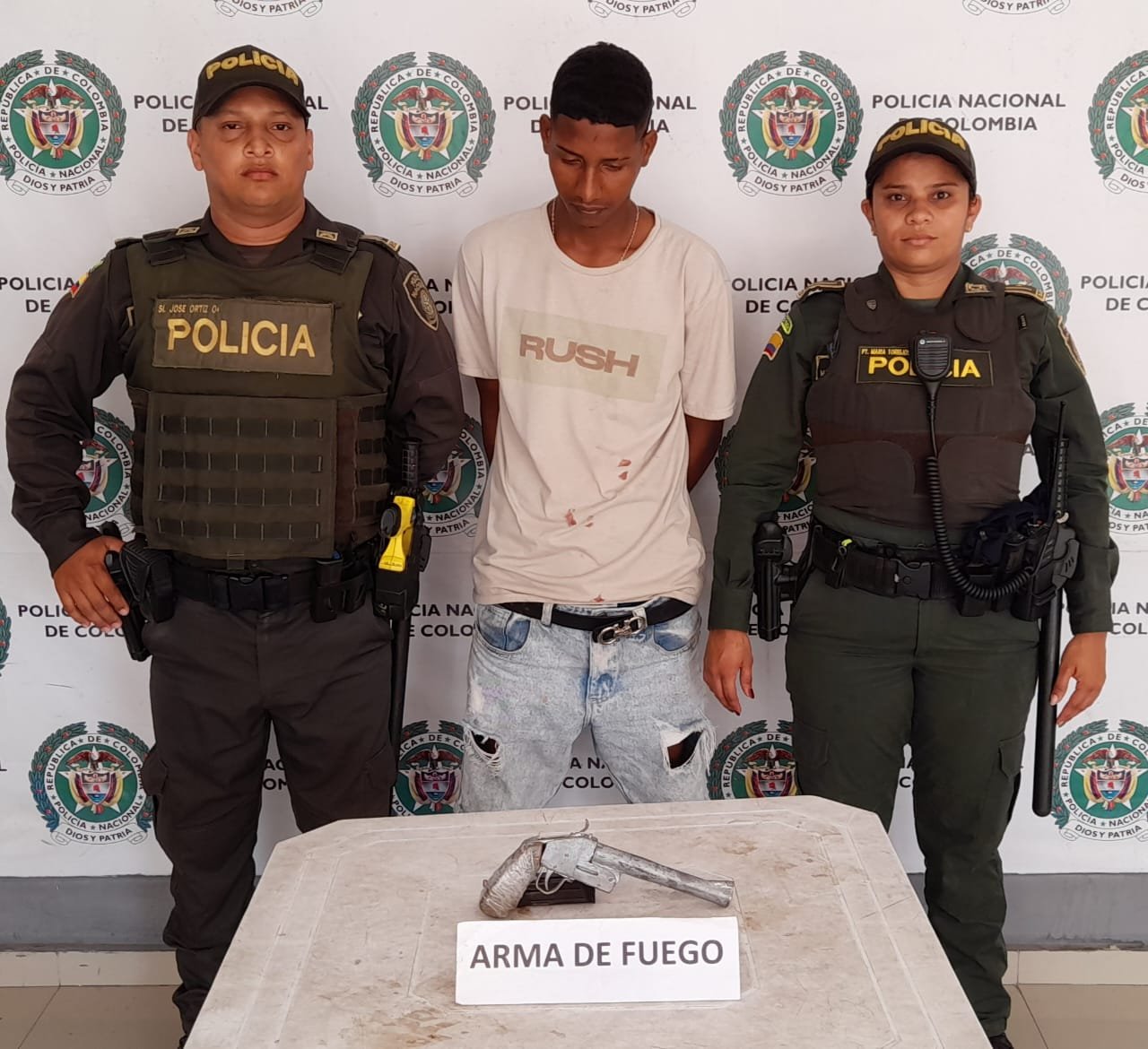 La policía metropolitana de Barranquilla a través de una rápida reacción de unidades del modelo nacional de vigilancia comunitaria por cuadrantes, logran capturar a una persona por el delito de porte ilegal de arma de fuego.