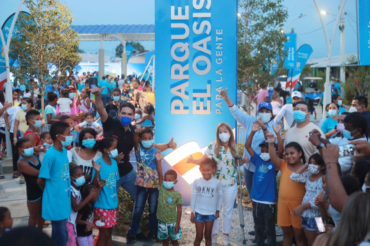 - La Gobernadora del Atlántico puso al servicio de la gente de El Oasis, en Manatí, el nuevo parque que ahora cuenta con gimnasio biosaludable, juegos infantiles, espacio multipropósito con cubierta, zonas verdes e iluminación.