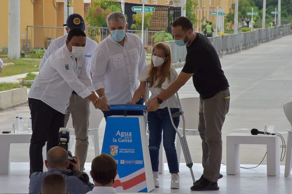 “Estamos entregando dos tanques de almacenamiento que van a permitir mejorar la calidad del agua, como dijo la Gobernadora Elsa, en un muy buen lenguaje atlanticense “buen chorro”, lo que significa también calidad de vida para muchas familias, que no es un chorrito menguado, es un chorro que representa bienestar y prosperidad. Hoy podemos decir que se pone la primera piedra y se entregan las obras a la comunidad”, dijo el presidente de la República, Iván Duque.