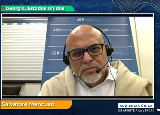 La diligencia judicial de Salvatore Mancuso ante los magistrados de laSala de Definición de Situaciones Jurídicas de la JEP en su primer día que estuvo enfocado en…