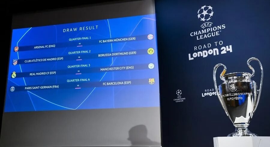 Real Madrid y Manchester City repetirán la semifinal de la última temporada en los cuartos de final de la Liga de Campeones, en los que el Barcelona se topará con Kylian Mbappé y el PSG, el Atlético de Madrid jugar con el Borussia Dortmund alemán y el Arsenal y el Bayern Múnich completarán el cuadro.