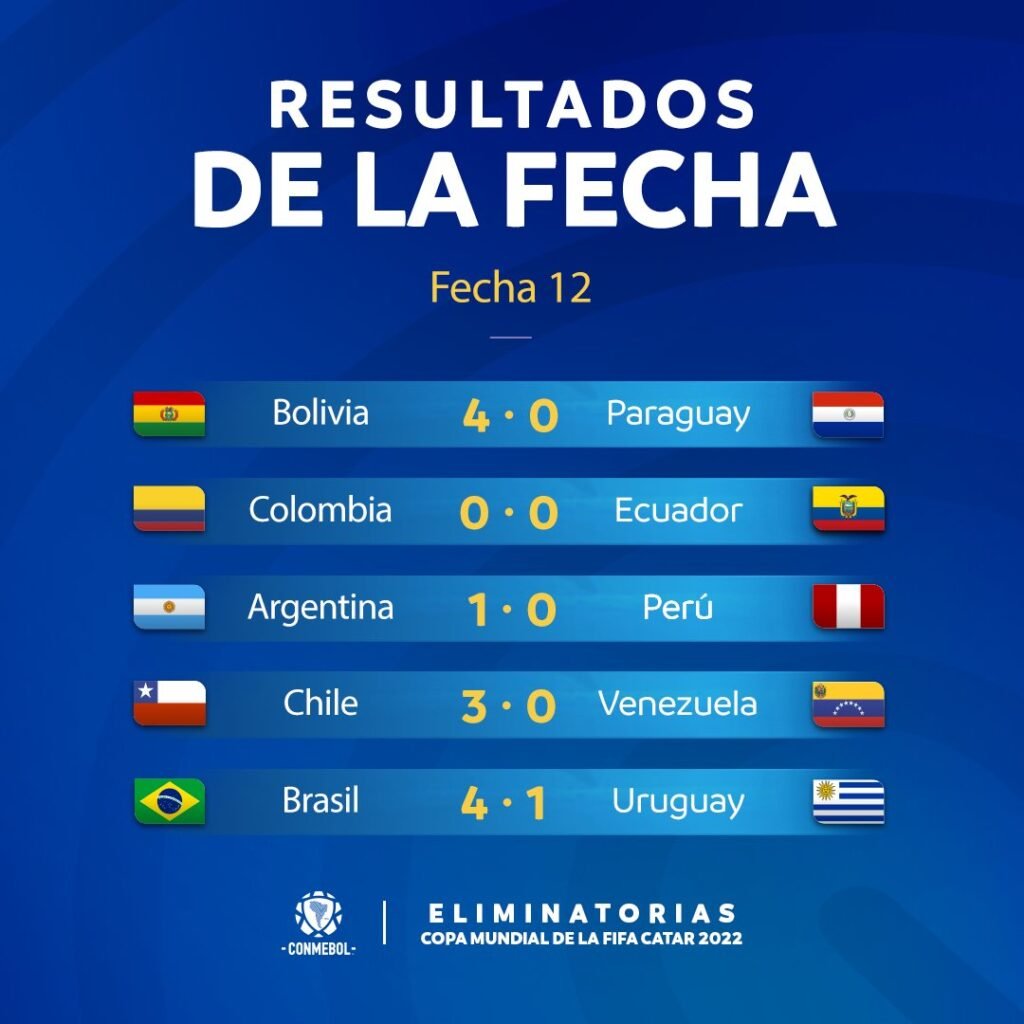 Fecha 12 Eliminatorias CONMEBOL al Mundial Catar 2022