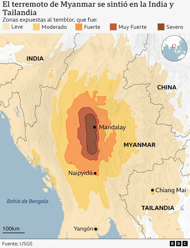 Aunque los países más afectados son Myanmar y Tailandia, la sacudida se ha sentido también en las regiones chinas de Yunnan y Sichuan, en la India y en Vietnam.