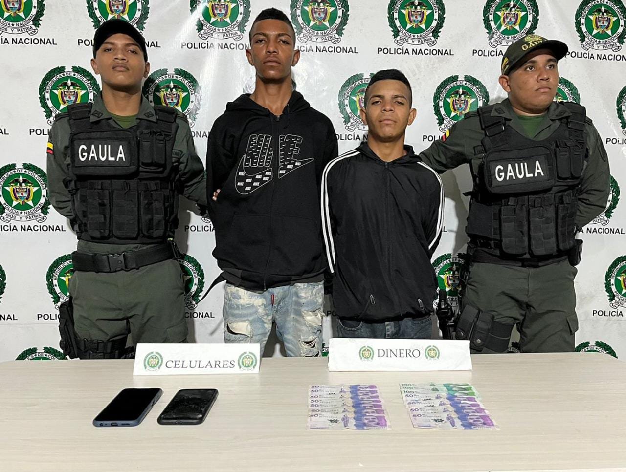 Los antisociales, quienes fueron identificados como Pablo Antonio Sanchez Arrieta y Faditg Jose Redondo Morsles fueron sorprendidos en flagrancia con una suma importante de dinero, la cual habría sido entregado por el comerciante minutos antes.