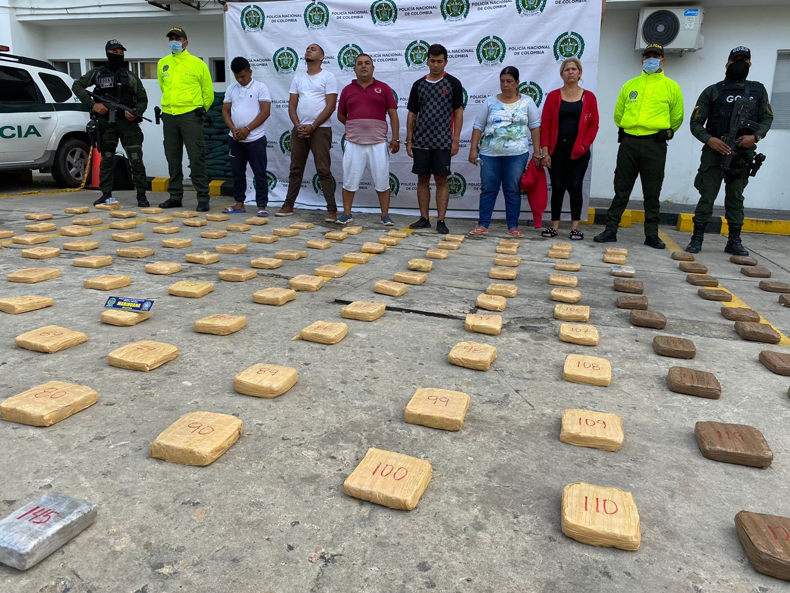 Esta operación fue ejecutada por unidades de la Seccional de Investigación Judicial con apoyo del Grupo de Operaciones Especiales de la Policía y la estrategia drónica, realizado siete diligencias de allanamiento que dejaron como resultado las capturas de siete personas (seis por orden judicial y uno en flagrancia) por el delito de concierto para delinquir con fines de microtráfico, así como la incautación de 145 paquetes de marihuana comprimida que pesaba alrededor de 77.000 gramos, unas 90 mil dosis que no saldrán a las calles y que tendrían un valor aproximado a los 60 millones de pesos. Además, dos personas fueron notificadas en centro carcelario y se incautaron 3 celulares.