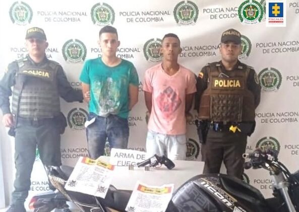 Los hoy procesados fueron capturados por uniformados de la Policía Nacional cuando intentaban huir del lugar en una motocicleta. Durante el procedimiento les  fueron  decomisados un arma de fuego con proyectiles y panfletos.