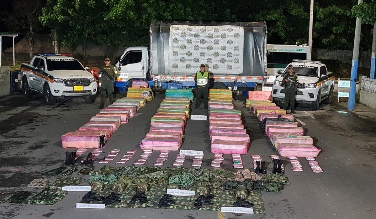Más de dos toneladas de marihuana fueron incautadas por la policía en la vía que conecta a Santander de Quilichao con Palmira, procedimiento en el que también se dejaron a disposición de las autoridades varias prendas militares.