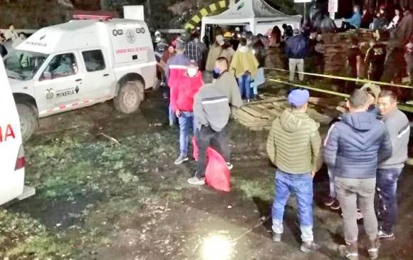 El CTI de Duitama hace presencia en la mina para recibir los cuerpos sin vida que han sido extraidos de la mina La Chapa, título pertenciente a Acerías Paz del Rio.