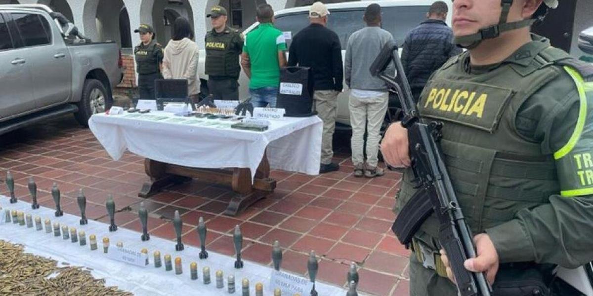 En poder de los detenidos se hallaron 15 granadas tipo mortero, 32 granadas de fragmentación, 2 pistolas, cerca de 17.000 cartuchos, 5 proveedores y barras de explosivo C4. También se incautaron 4 radios, 8 celulares, un chaleco balístico, un computador, 2 USB y 3 camionetas, una Toyota TX color blanco, una Toyota Hilux color gris plata y una Toyota Hilux color blanco.