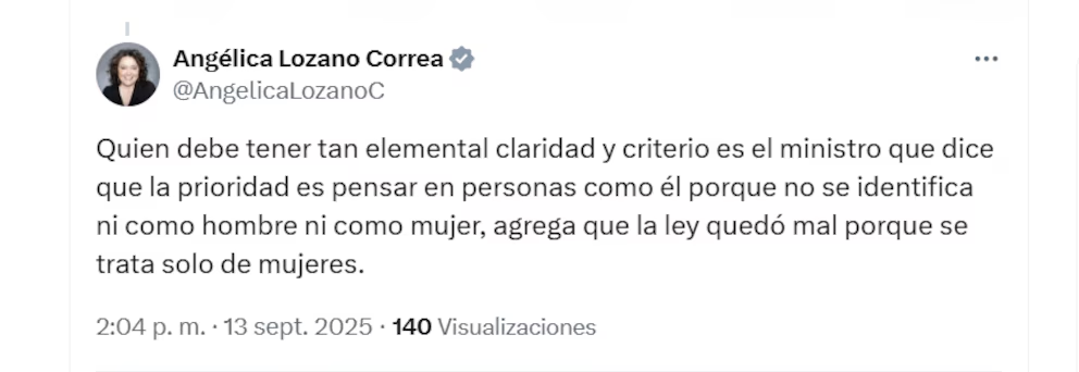 “Quien debe tener tan elemental claridad y criterio es el ministro que dice que la prioridad es pensar en personas como él porque no se identifica ni como hombre ni como mujer, agrega que la ley quedó mal porque se trata solo de mujeres”, detalló.