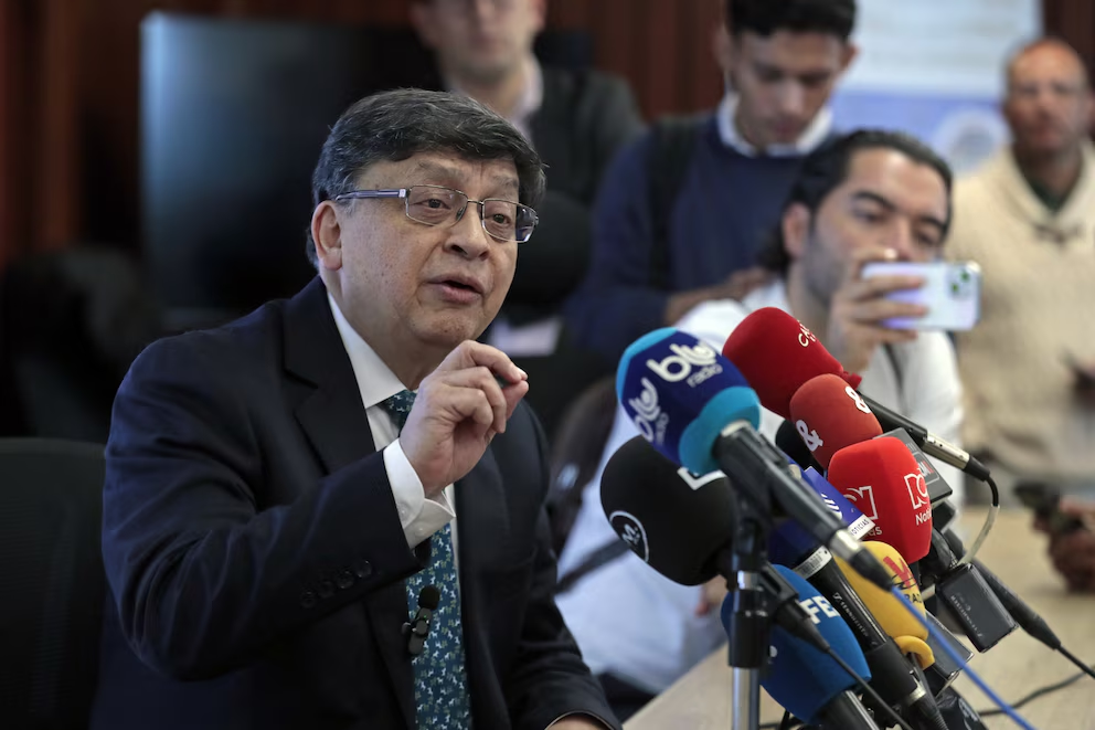 Magistrado Jorge Enrique Ibáñez Najar habla durante una rueda de prensa este 26 de junio de 2024 en el Palacio de Justicia, en Bogotá (Colombia). EFE/ Carlos Ortega