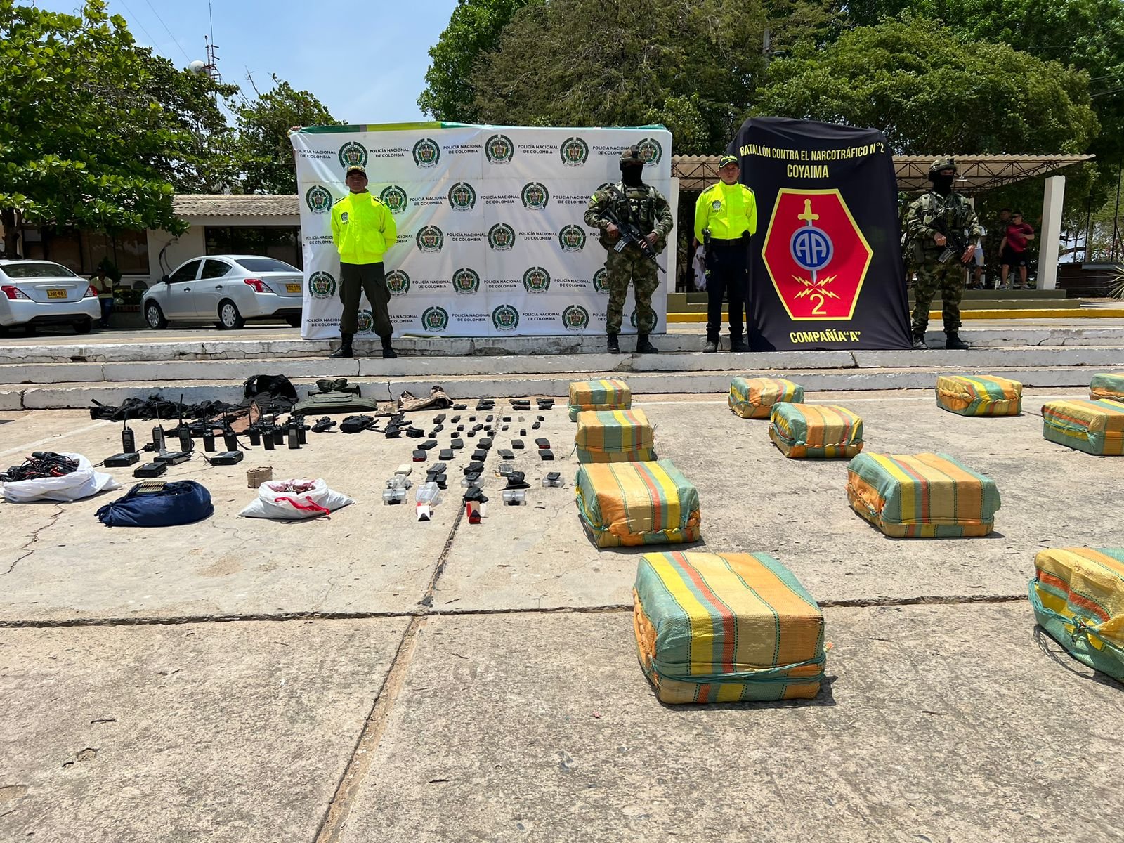 “Con coordenadas precisas, las fuerzas combinadas llegaron hasta un paraje solitario del Cerro de La Teta, en zona rural de Uribia (La Guajira) y comenzaron a cavar la tierra hasta encontrar 40 lonas, cada una con 25 panelas”, señaló la Policía Nacional mediante un comunicado de prensa.