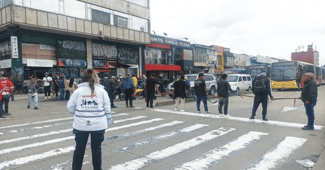 Los bloqueos comenzaron desde las primeras horas de la mañana, afectando la movilidad en la carrera Décima con avenida Jiménez, una de las principales arterias del centro histórico de la capital.