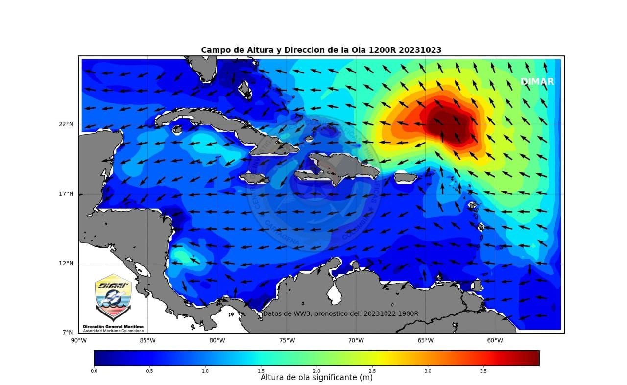 La DIMAR advierte que en las próximas 48 horas la altura de las olas podría superar los 2 metros en zona vecina del archipiélago de San Andrés.