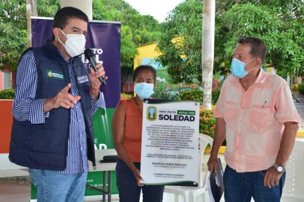 El alcalde de Soledad, Rodolfo Ucrós Rosales, fue el encargado socializar con los habitantes del sector el alcance de este documento. “Luego de un minucioso proceso de gestión, avanzamos para hacer entrega de esta resolución a los habitantes de Villa Sol, quienes a partir de este momento podrán contar con inversión en obras que sin lugar a dudas mejorarán su calidad de vida”, precisó el mandatario.