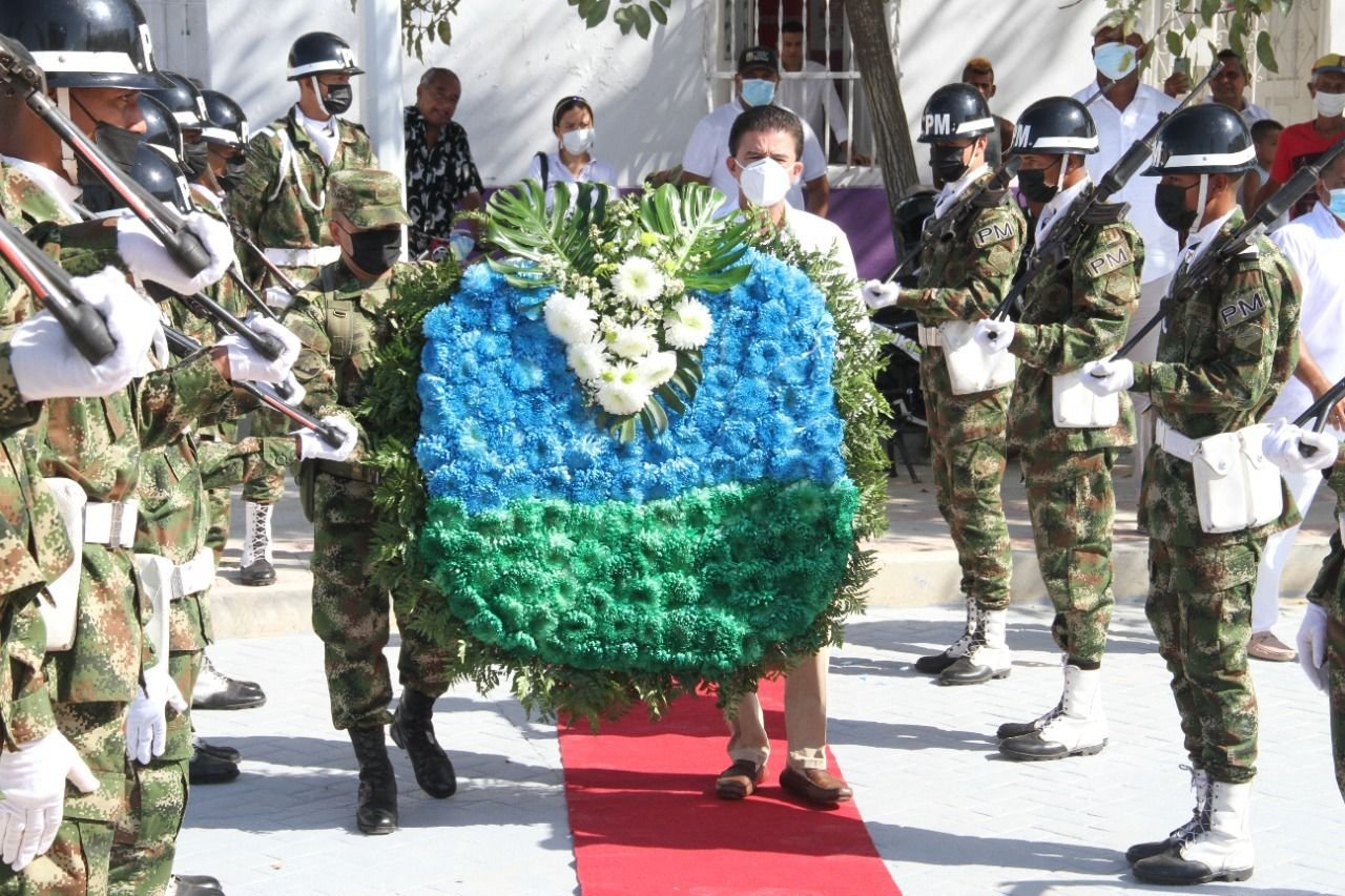 El evento central se desarrolló en la plaza principal, con una ofrenda floral a la que asistió el mandatario soledeño, la primera dama y demás autoridades del ente territorial. Durante el acto, la Banda Marcial del Batallón de Policía Militar No.2 entonó las notas de los himnos nacional y de Soledad. El cierre de la ceremonia estuvo a cargo de la banda municipal.