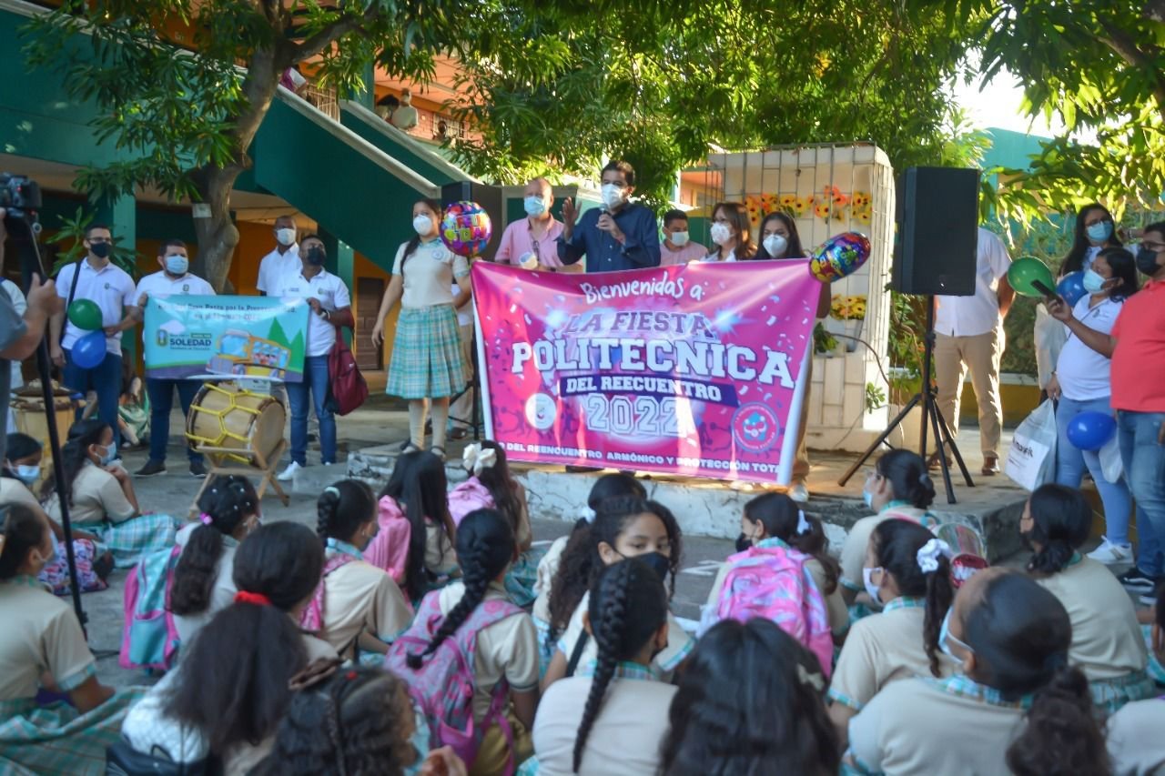 Cumpliendo con normas de bioseguridad para prevenir contagios por el virus del Covid-19, 52 mil estudiantes iniciaron clases presenciales en las 32 Instituciones Educativas oficiales de Soledad.
